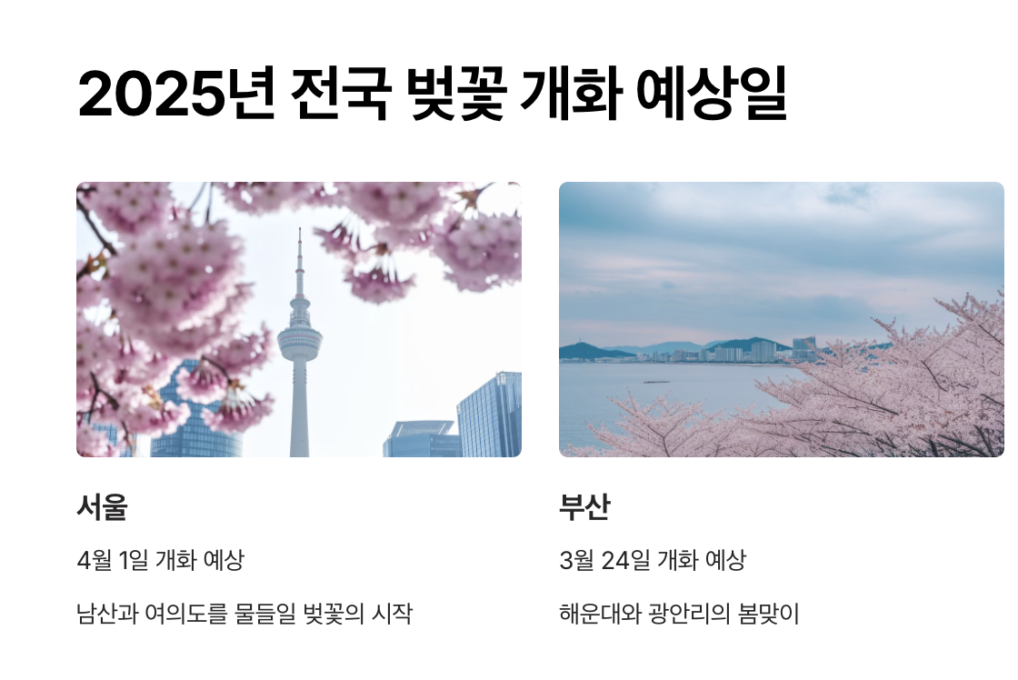 📌 2025년 지역별 벚꽃 개화 예상일 및 만개 시기