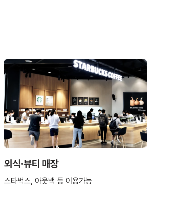 - 투썸플레이스, 뚜레쥬르 (일부 매장 사용 가능)