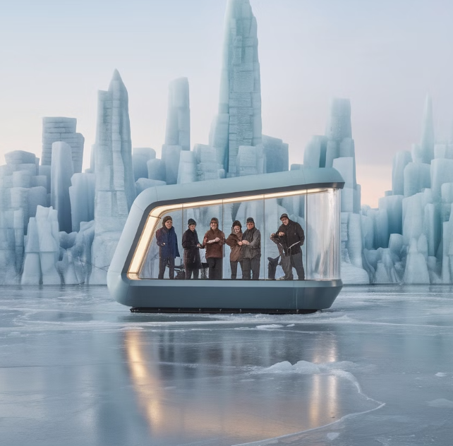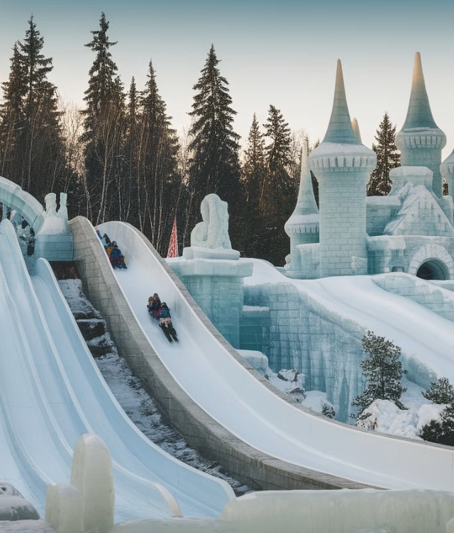 - 대규모 얼음 조각으로 구성된 놀이 공간.