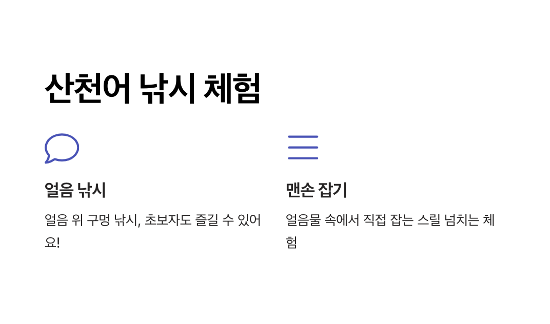 - 얼음 낚시: 성인 15,000원, 어린이 10,000원