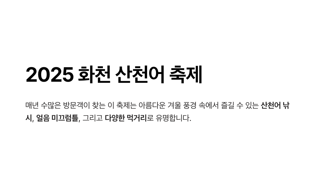 2025년, 대한민국을 대표하는 겨울 축제인 화천 산천어 축제가 돌아옵니다.