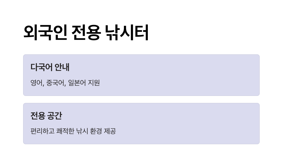 - 외국인 방문객을 위해 마련된 낚시터로, 다국어 안내와 지원이 제공됩니다.