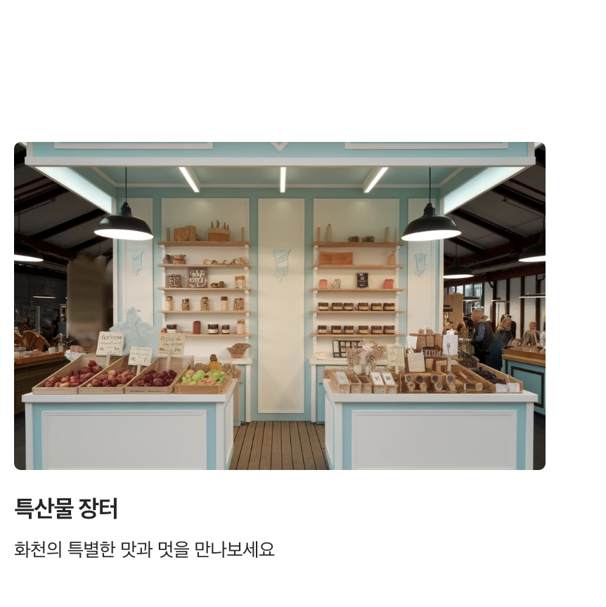 - 추천 품목: 화천 사과, 로컬 꿀, 수제 도자기.