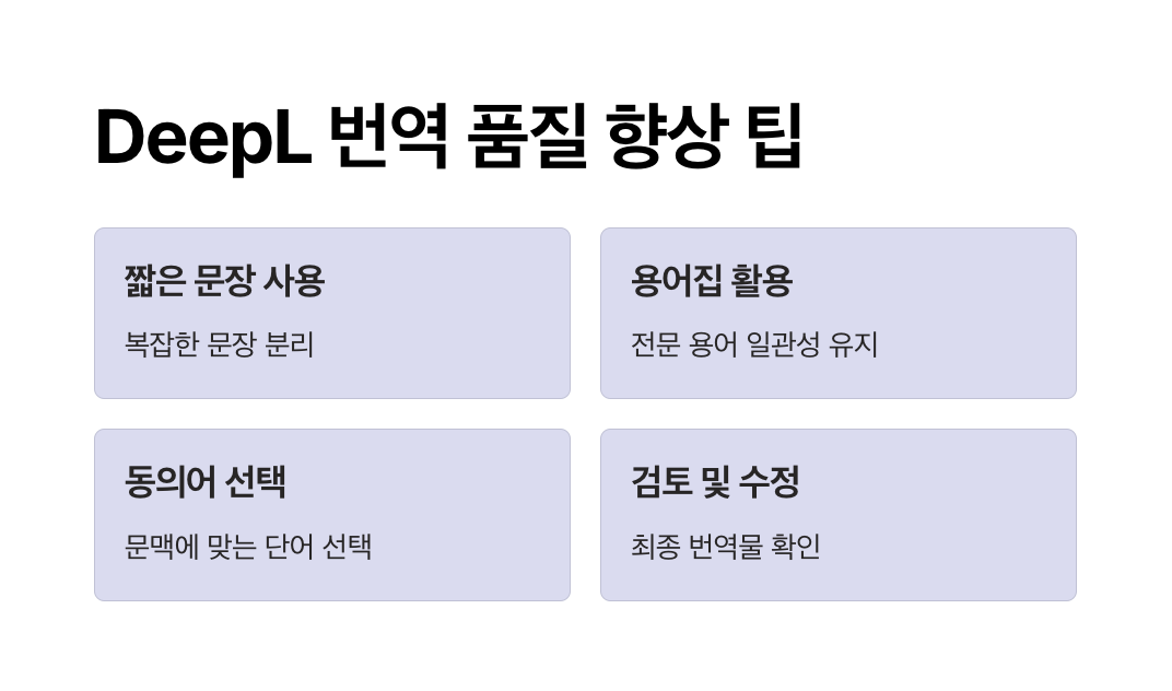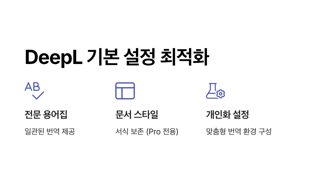 - 보안 강화: DeepL Pro 사용 시 번역 데이터가 저장되지 않아 민감한 문서 번역 가능