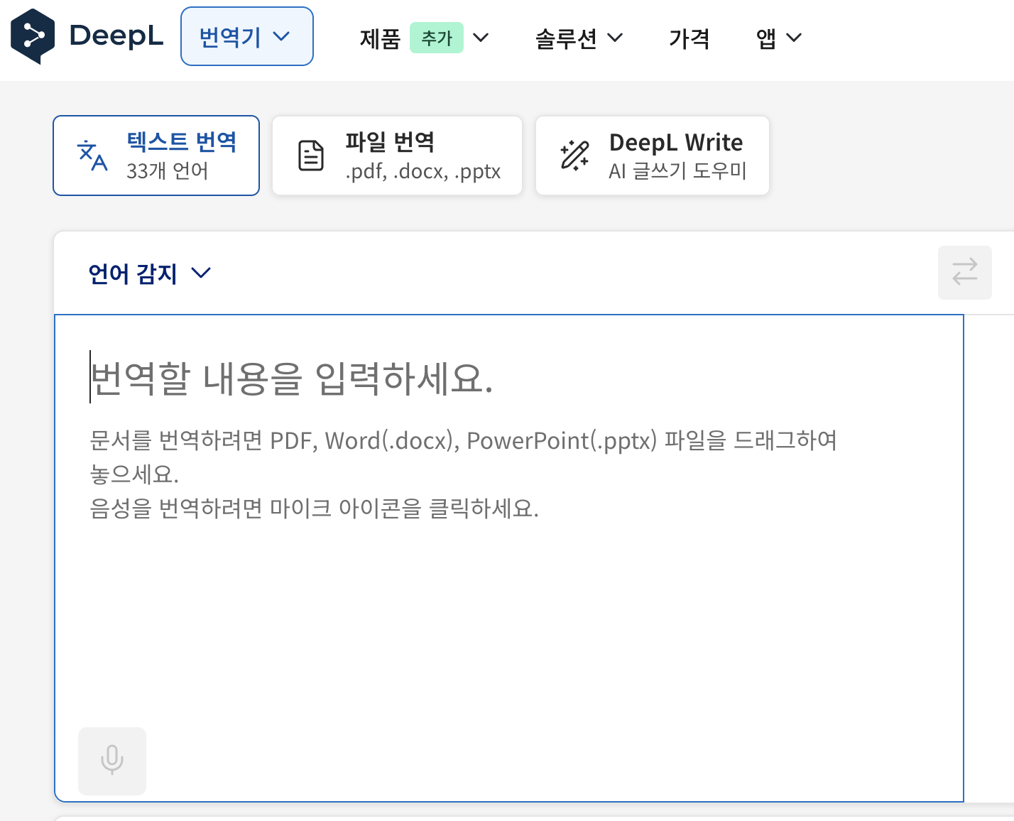 - 자동 감지 기능 활용: DeepL이 입력한 문장의 언어를 자동 감지