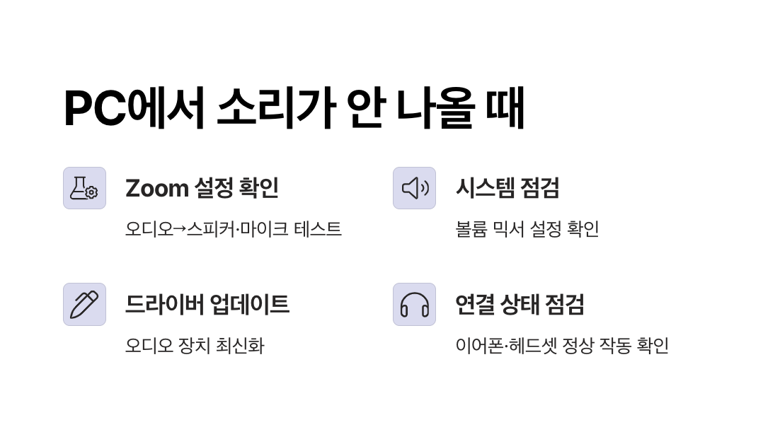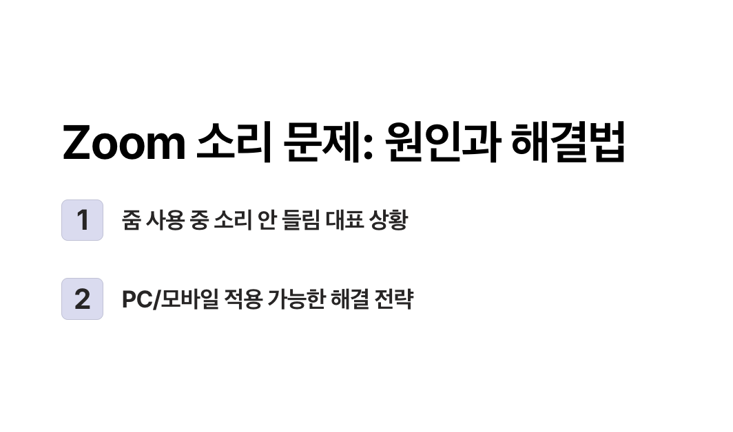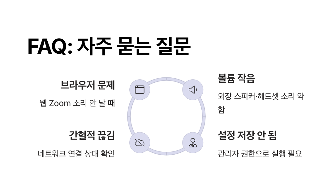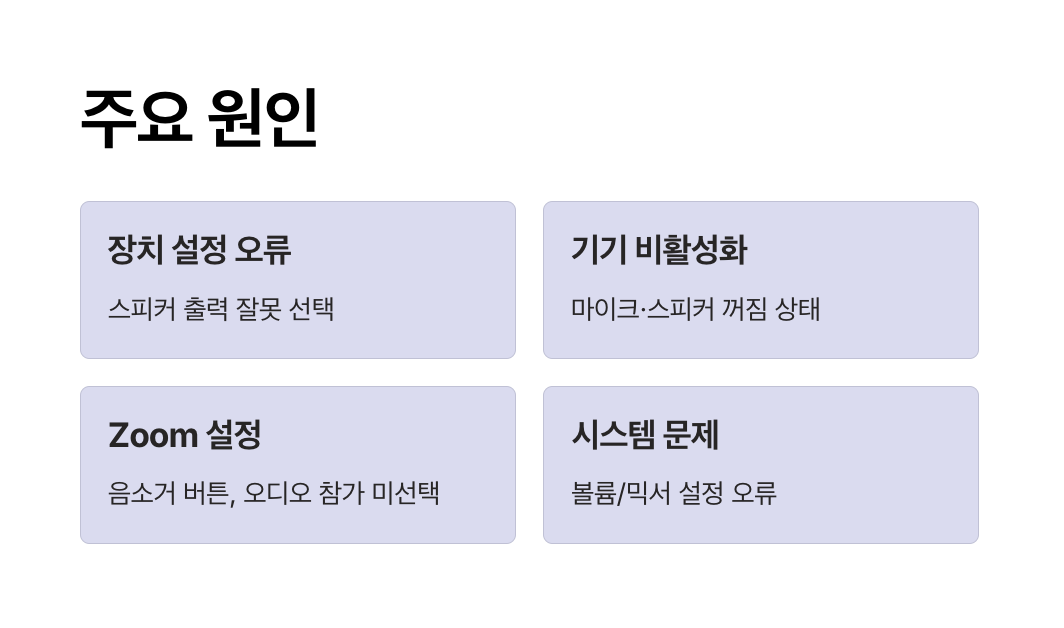 위 네 가지 원인을 먼저 확인하고, 각각의 설정을 올바르게 고쳐야 Zoom 소리 안 나옴 문제를 해결할 수 있습니다.